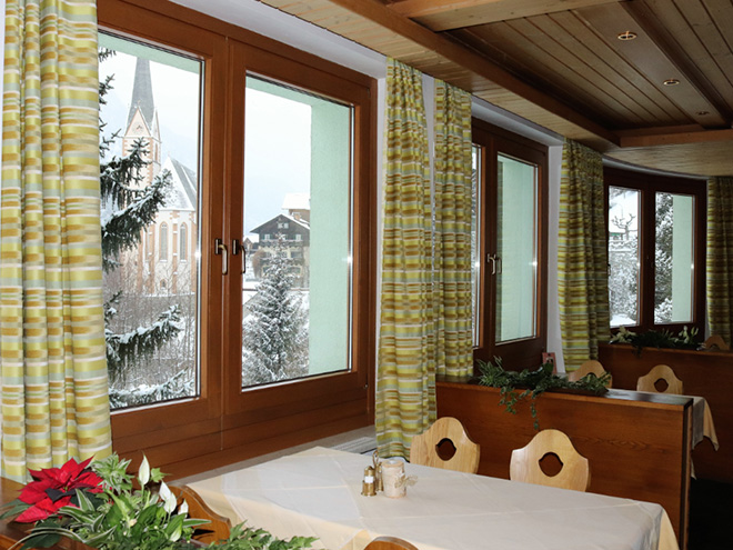 Unser Haus steht am Anfang des Ortszentrums, nur 200 Meter sind es zur Piste bzw. Seilbahntalstation, 100 Meter zum öffentlichen Hallenbad und 50 Meter bis zur öffentlichen Tiefgarage, es gibt auch hauseigene Parkplätze. Die öffentliche Elektromobil-Ladestation ist nur 20 Meter vom Hotel entfernt.